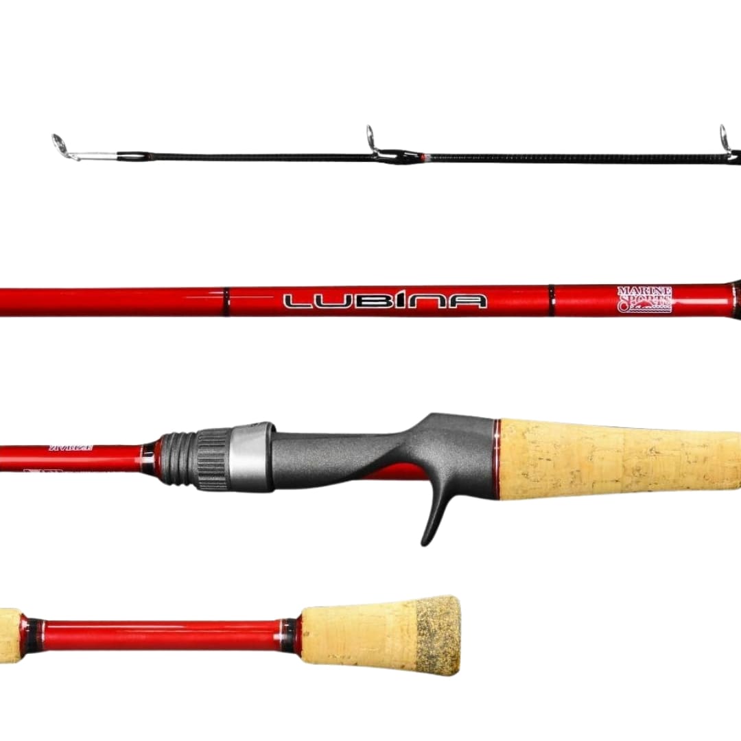 La caña Lubina tiene un blank incorporado en IM10, tiene un porta reel tipo ECS, un mango bi-split en corcho E.V.A de alta densidad, y una tapa de culata engomada, con mayor protección contra impactos.