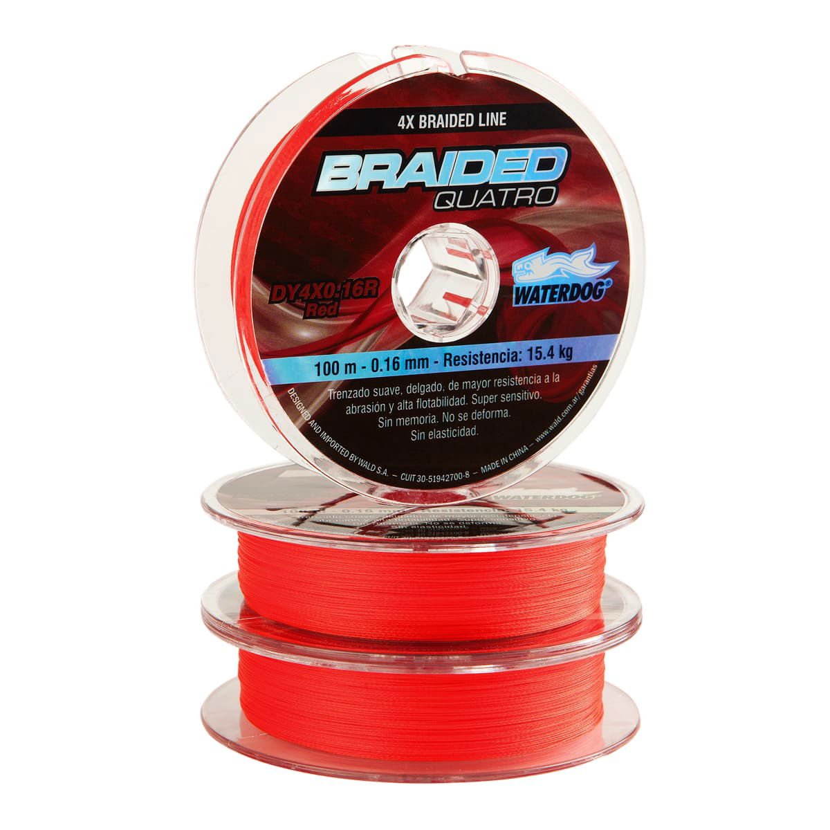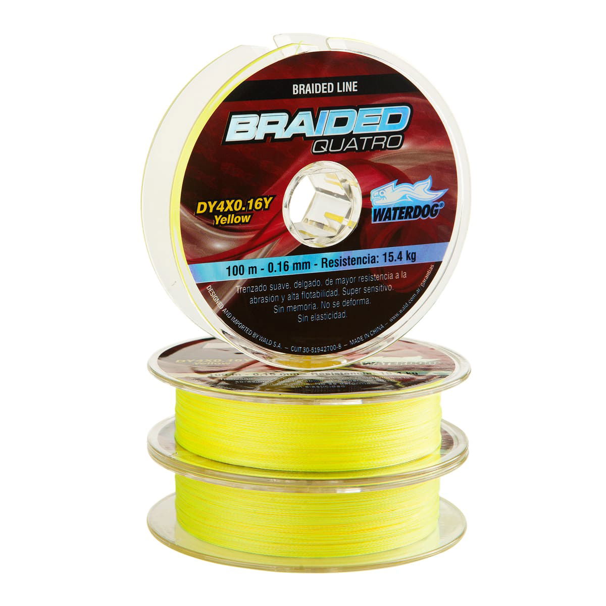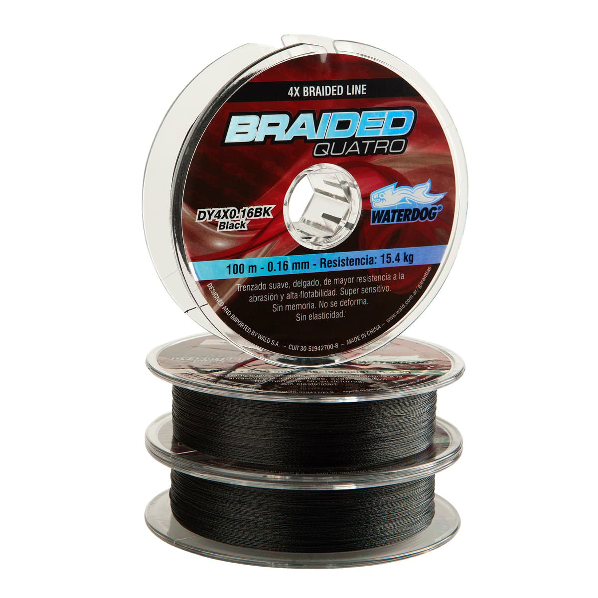 BRAIDED LINE de WATERDOG de un trenzado suave, delgado y de mayor resistencia a la abrasión. Diseñado mar, ríos y lagos. Exento de deformaciones, mayor sensibilidad y no posee memoria. Trenzado 4 hebras.