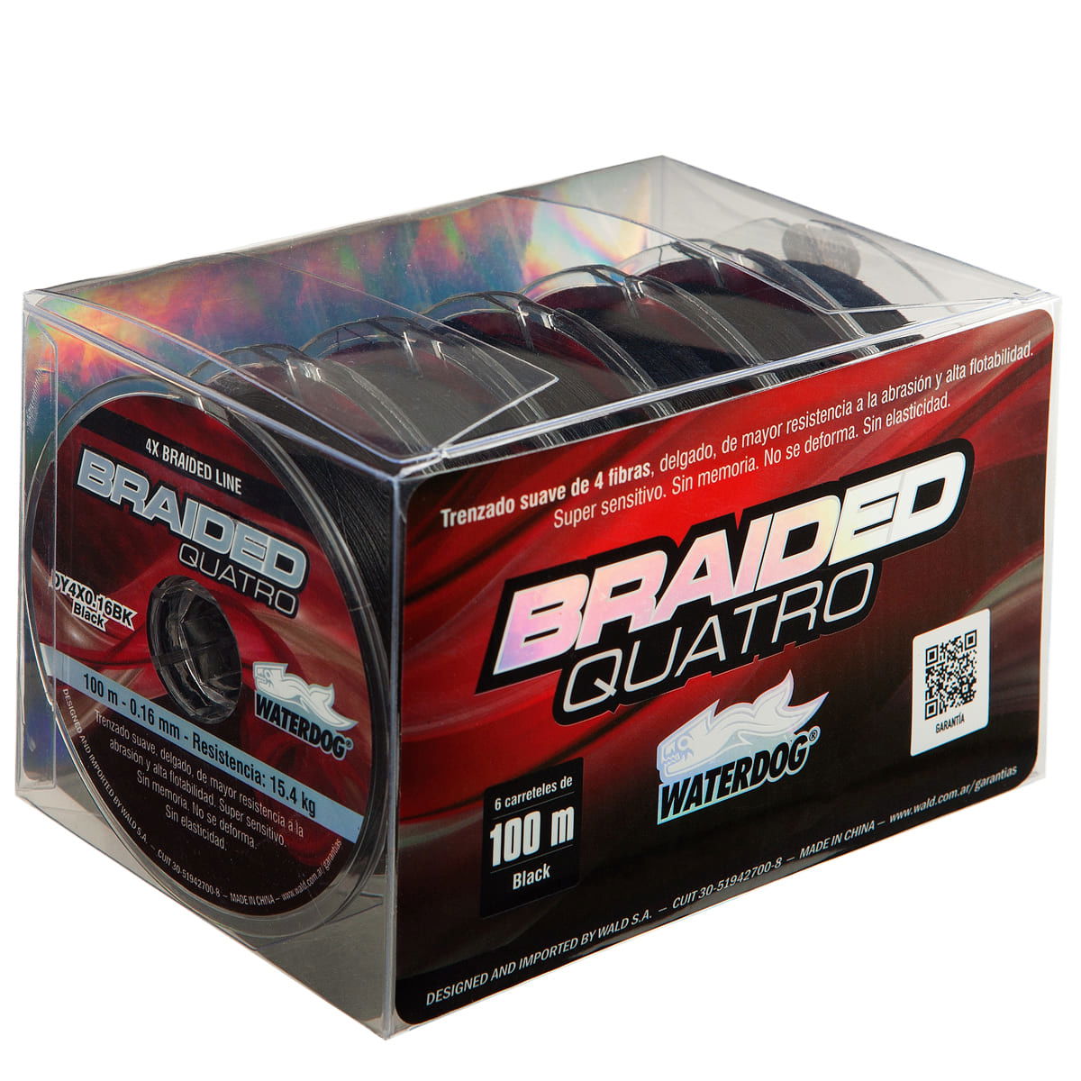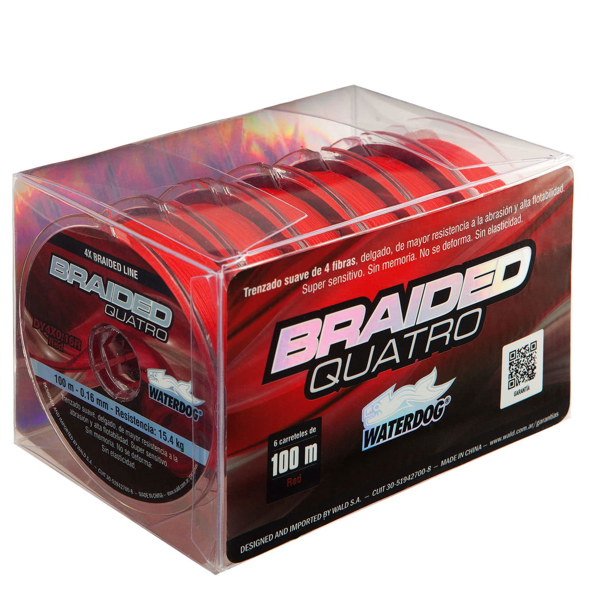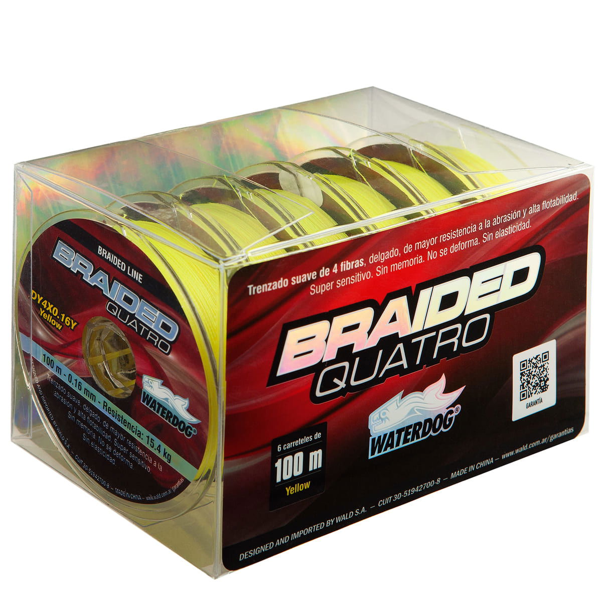 BRAIDED LINE de WATERDOG de un trenzado suave, delgado y de mayor resistencia a la abrasión. Diseñado mar, ríos y lagos. Exento de deformaciones, mayor sensibilidad y no posee memoria. Trenzado 4 hebras.