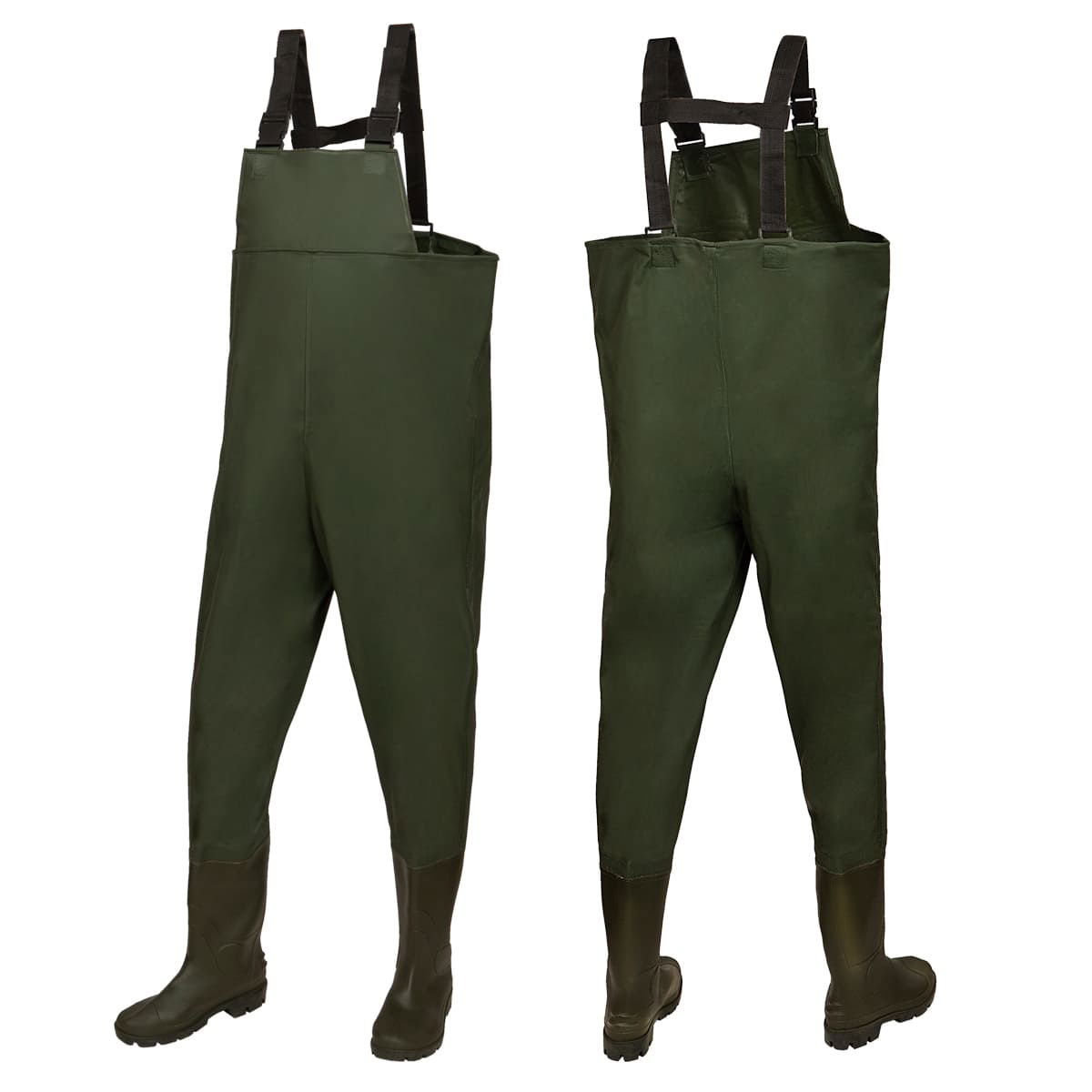Diseñados para brindar protección total en ambientes húmedos, estos waders color verde oliva están fabricados en PVC/poliéster/PVC, combinando resistencia, flexibilidad y durabilidad.